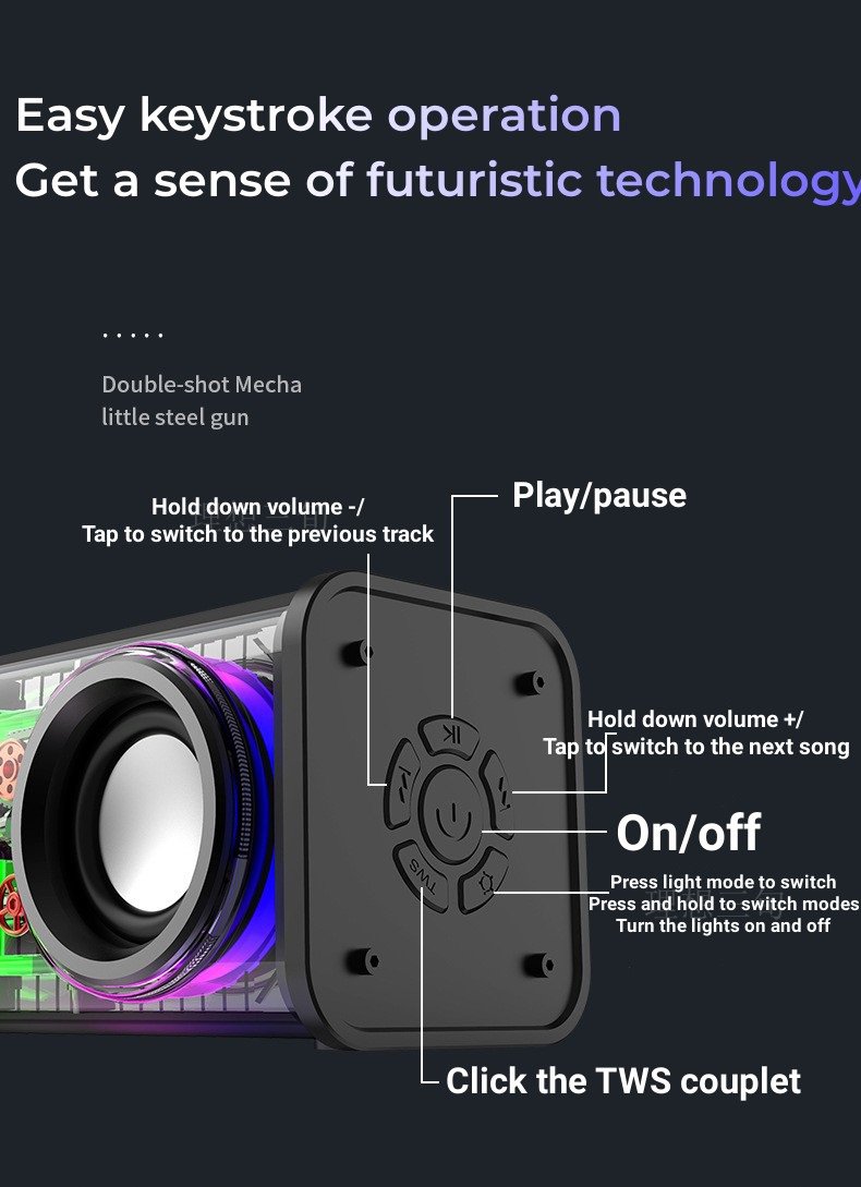 V8 Transparent Mecha Bluetooth Speaker